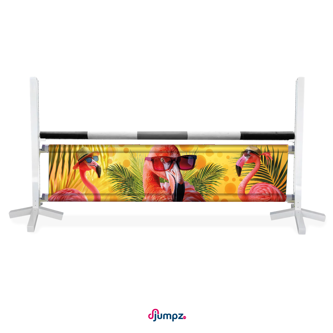 Breng de zomer naar je rijbak met dit vrolijk hindernisdoek met flamingo opdruk.